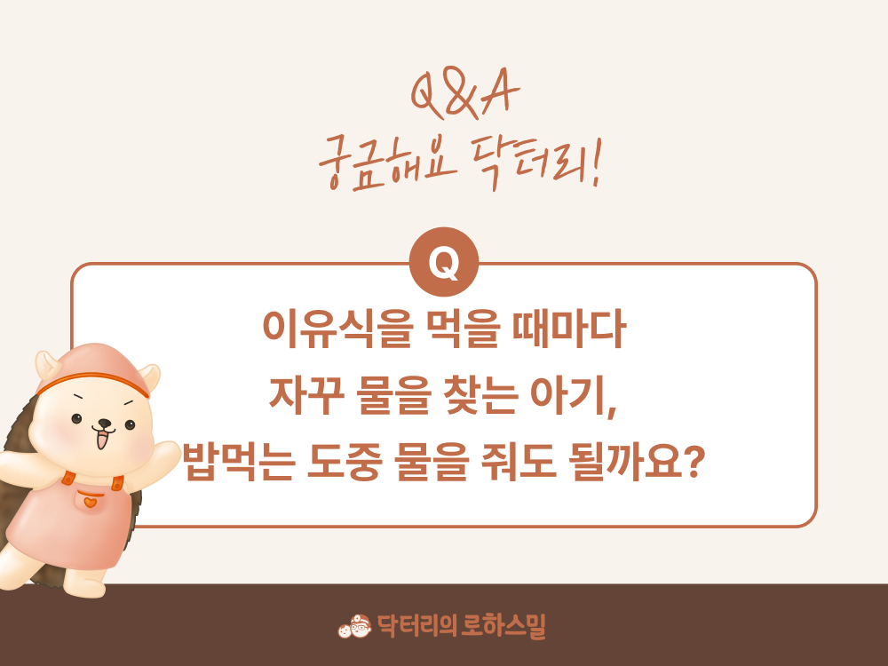 또 그럴리는 없겠지만 이유식에 염분이 너무 많이 들어갔거나, 이유식이 너무 퍽퍽(?)하다면 아기들도 물을 찾는 게 당연하겠지요? 혹시 모르니 이유식 만들 때 다시 한번만 체크해주시면 걱정 안하셔도 될 것 같습니다. 다만, 아기가 식사랑 상관 없이 너무 많은 양의 수분을 섭취하려고 한다고 느끼실 때는, 가까운 소아과 선생님께 여쭤보시는게 좋을 거 같아요.