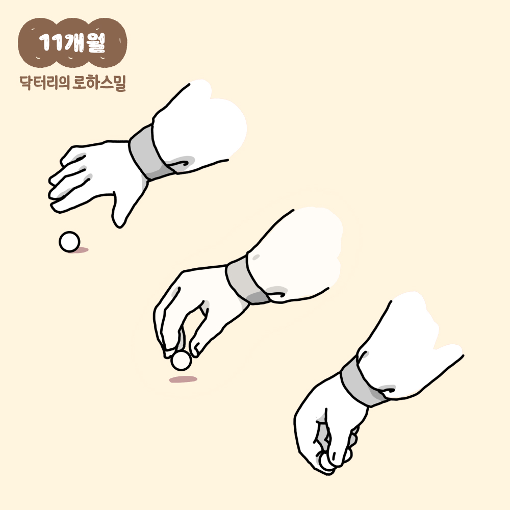 11개월의 아이들은 엄지와 검지 끝을 사용하여 집게 동작으로 작은 물체를 잡을 수 있습니다. 아이와 함께 바닥에 있는 물건을 집는 놀이를 해보세요.