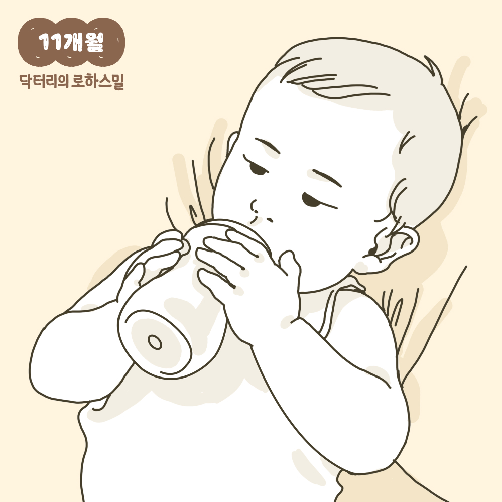 11개월의 아기들은 혼자서 젖병을 쥐고 마실 수 있습니다. 이제 곧 돌이 되면 생우유를 먹이기 시작합니다.