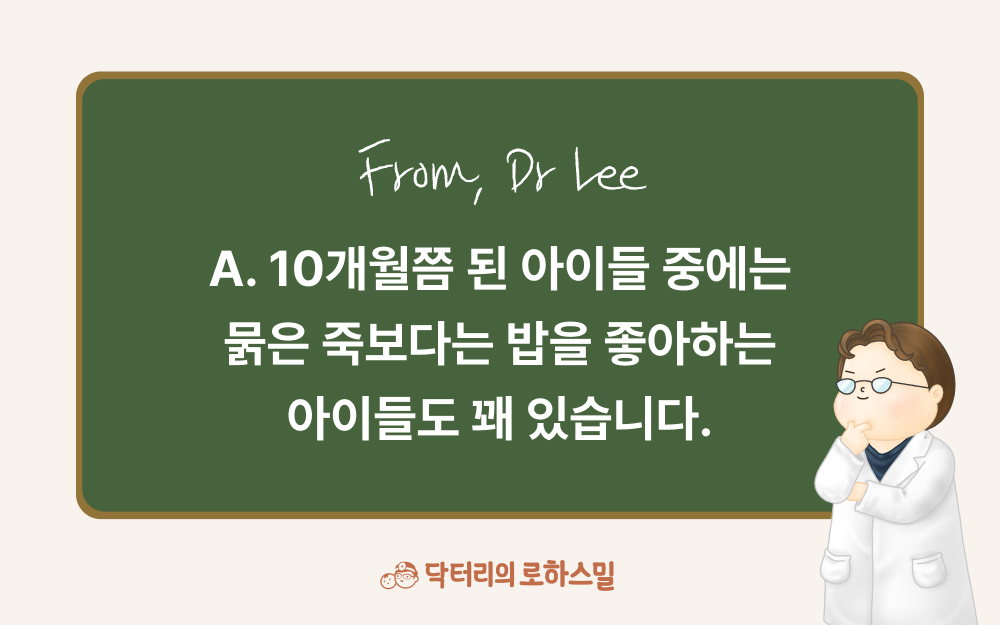 10개월 아이 엄마입니다. 중기, 후기를 나름 열심히 먹여보려 했는데 죽 느낌이 싫은지 몇 스푼 받아먹고 입을 닫아버려요. 그래서 이번엔 완료기 이유식을 주문하려고 하는데 괜찮을까요? 밥이나 고체는 넙죽넙죽 잘 받아먹는 편이라서요.