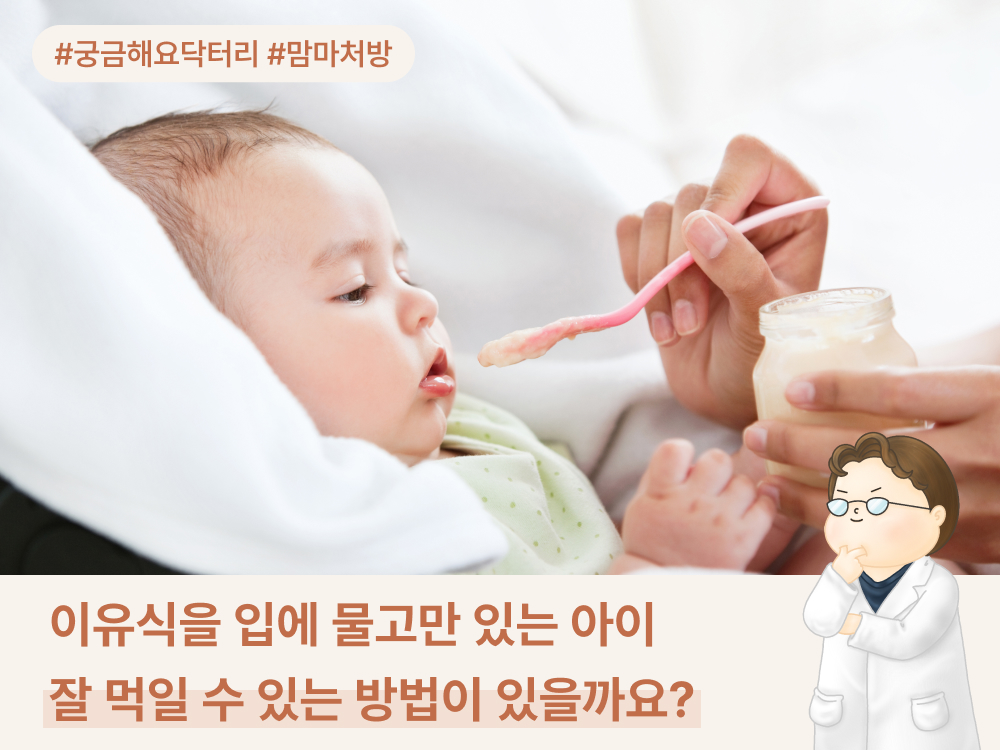 이유식을 입에 물고만 있는 아이, 잘 먹일 수 있는 방법이 있을까요?